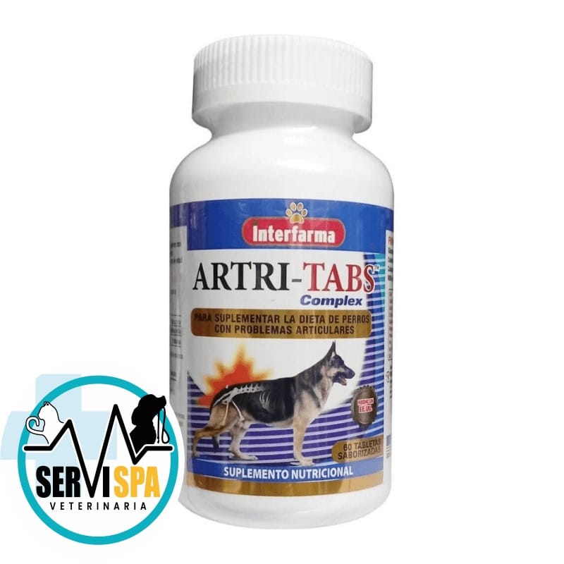 Interfarma Artri-Tabs Complex es un suplemento para perros que necesitan tratamiento en sus articulaciones. Artri-Tabs ha sido formulado con los nutrientes nutrientes necesarios para la reparación de las articulaciones gracias a la glucosamina que estimula la producción de sustancias reparativas del cartílago, al condroitin sulfato responsable de la fortaleza y flexibilidad del cartílago, al colágeno hidrolizado que es el elemento del cual están fabricados los cartílagos, y finalmente al metilsulfonilmetano que ayuda a disminuir la inflamación y el dolor.